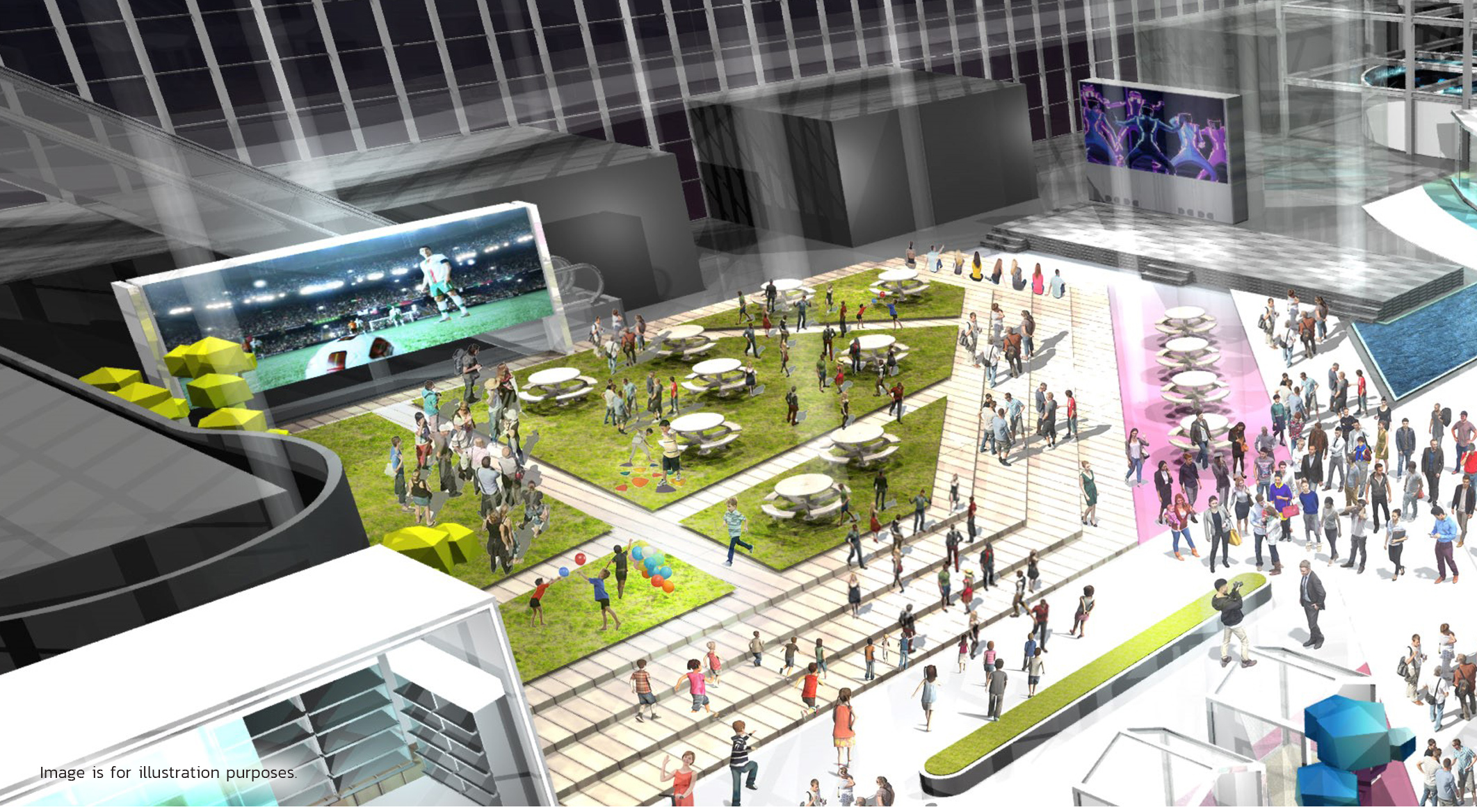 The MEGA WEB space will comprise over 90 stations where visitors can enjoy direct encounters with the future!