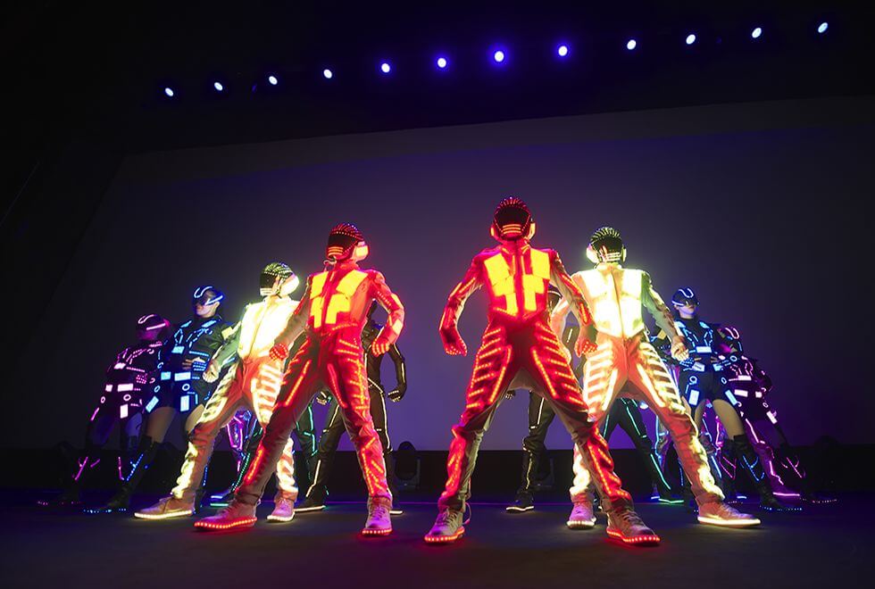 SAMURIZE from EXILE TRIBE is a team of dancers who wii give a dance performance with the use of LED lights, produced by EXILE HIRO. The group gained global recognition after an appearance at Ultra Music Festival Miami 2015 with world-famous DJ and producer, Afrojack. SAMURIZE makes appearances at events, concerts, in music videos, TV shows, and commercials featuring other artists from the Japanese entertainment company LDH.
