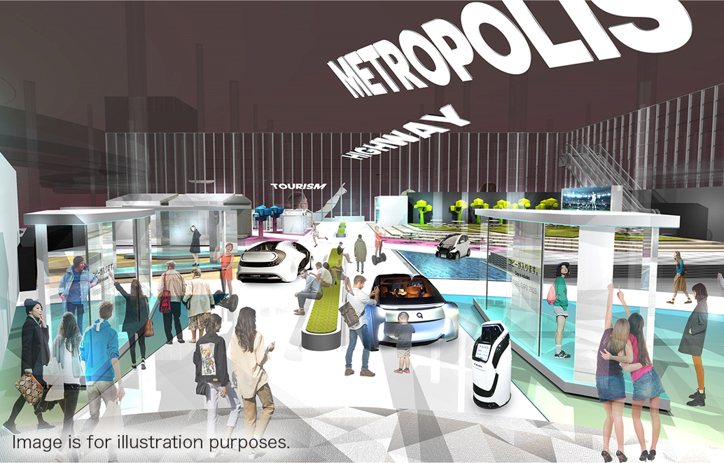 Moving further into the exhibit, visitors will reach a futuristic cityscape in which they will encounter the new mobility of the future. Here they can interact with a wide range of displays and enjoy a “mobility experience” featuring cutting-edge vehicle models. This venue will also feature an installation depicting a future lifestyle that fuses mobility and living space.