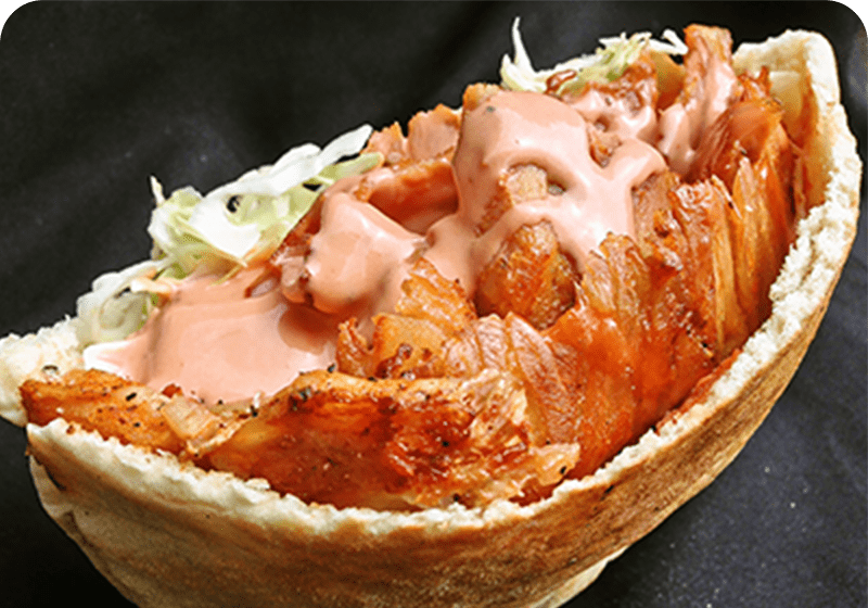 日本一おいしいケバブを決めるケバブGPで3年連続優勝店のケバブサンド。肉の仕込みからソースまでこだわり、マリネードされた肉がやわらかく、一度食べたらやめられない味。