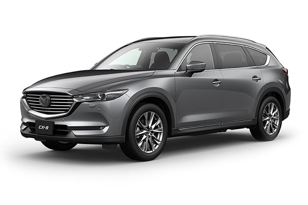 災害時の食料提供に活用できるキッチンカーを牽引するCX-8です。