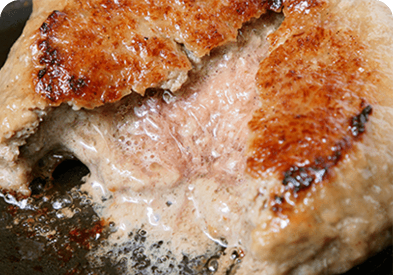 将泰庵名物『飲めるハンバーグ』。A5ランク黒毛和牛を使用した究極のハンバーグ。溢れ出る肉汁と今まで食べた事の無い新食感の味わいを是非ご堪能下さい。