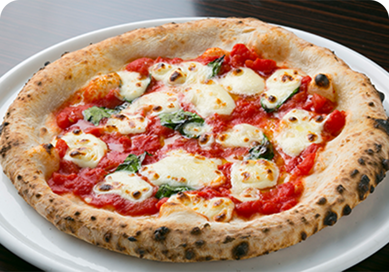 累計販売数300,000枚突破!!イタリア直輸入の薪窯を使用した本格マルゲリータ。窯に入れて90秒で焼き上げる本格ピッツァ。さっくり・もっちり生地にとろ~りモッツァレラのマルゲリータをご提供。