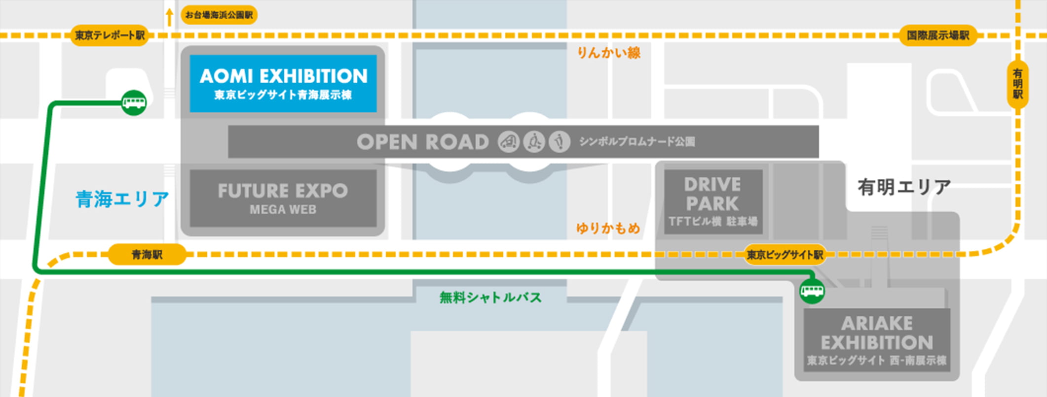 ※メーカーの車両展示ブースは、東京ビッグサイト西・南展示棟にある場合もございますので、ご注意ください。